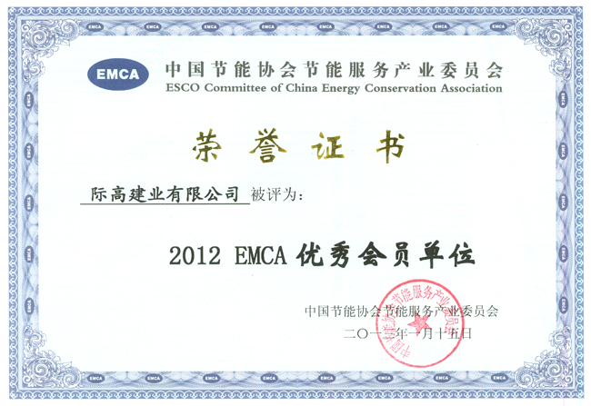 日前,经中国节能协会节能服务产业委员会评选,际高建业获2012EMCA协会优秀会员单位荣誉。